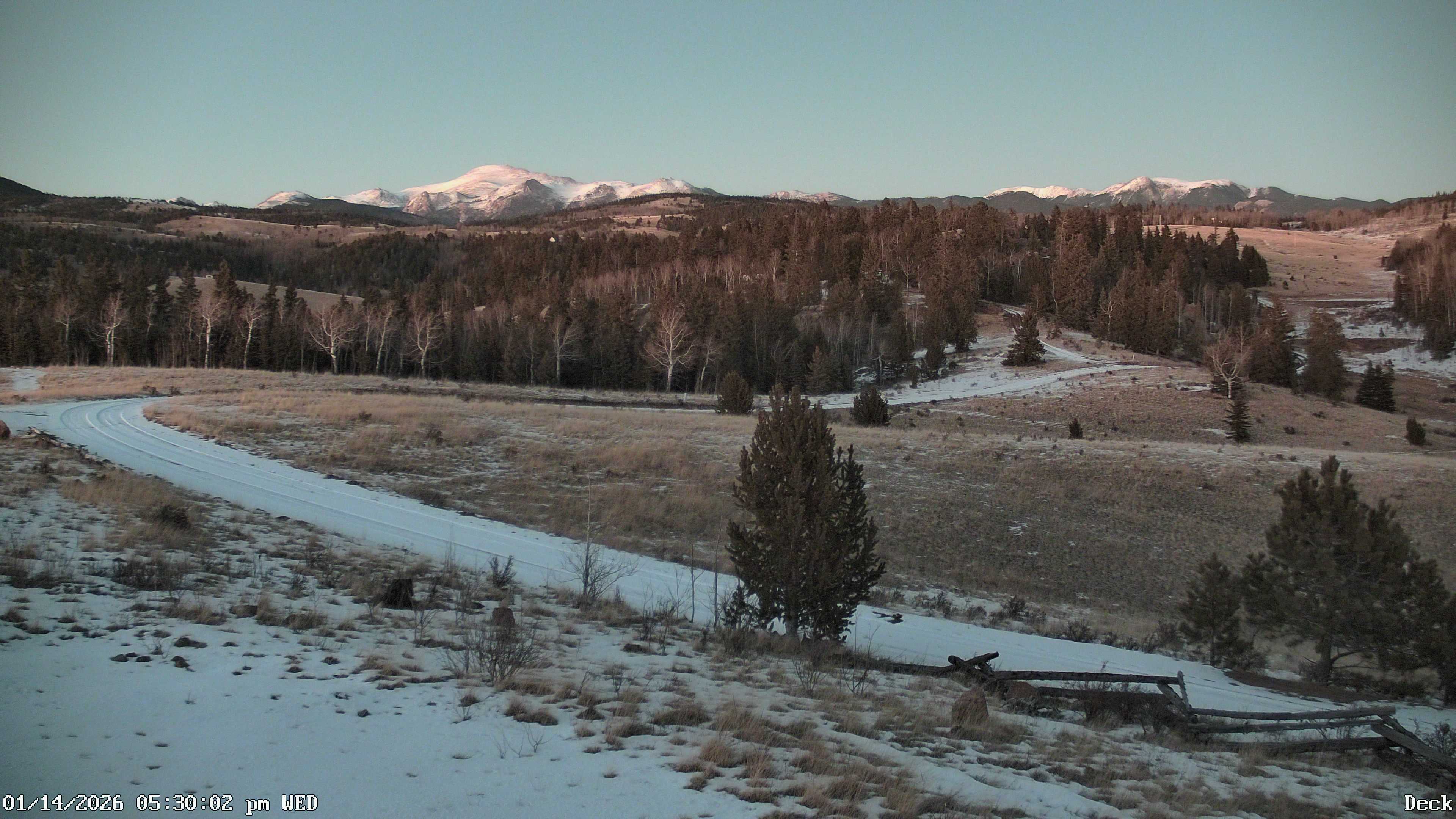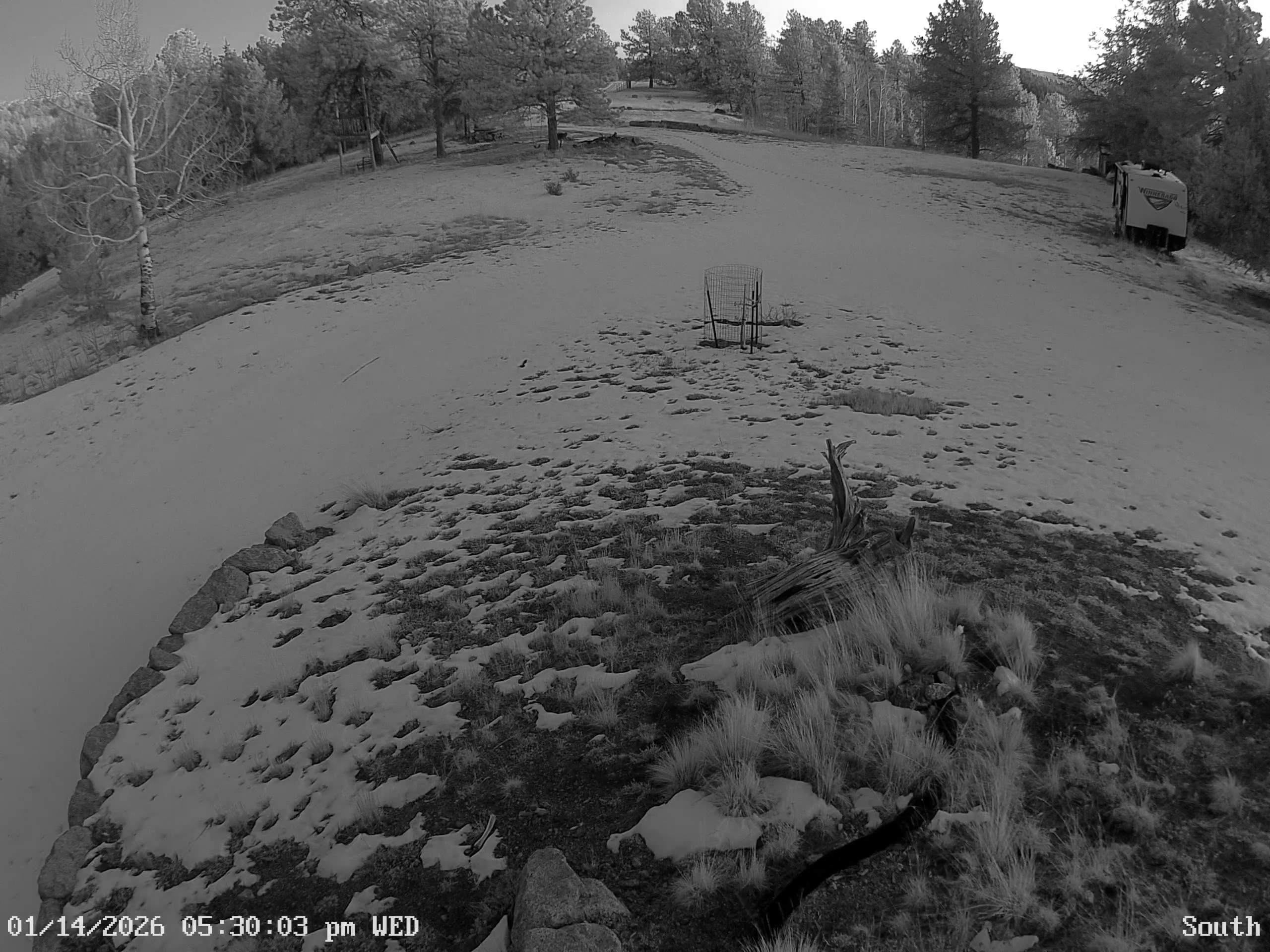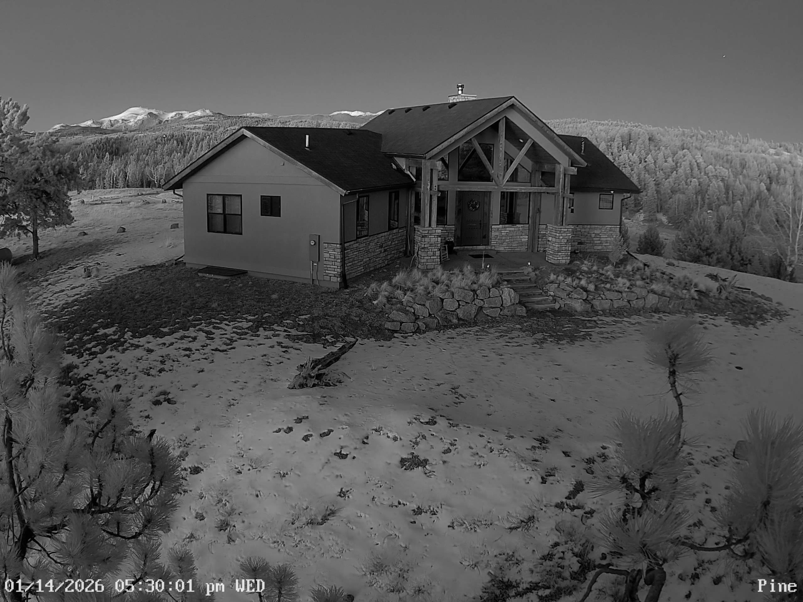 Camera 1 (Deck) Camera 2 (Pine) Camera 3 (South) Temp: 33.3 F, winds 0.4 mph, max wind gust 10.3 mph 1/14/2026 8:02pm